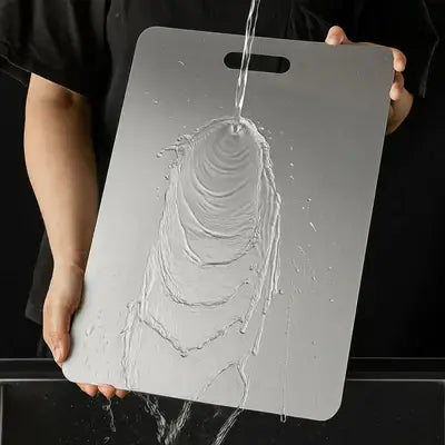 Ao contrário das tábuas de madeira ou plástico que acumulam resíduos e bactérias, a Titanium Pro possui uma superfície de inox de grau alimentício, que não mancha, não retém odores e pode ser lavada com facilidade, garantindo uma cozinha mais saudável e higiênica.